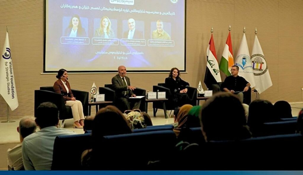 سیمپۆزیۆمی کاریگەری و مەترسیە شاراوەکانی تۆڕە کۆمەڵایەتیەکان لەسەر خێزان و هەرزەکاران، لە زانکۆی کۆمار بەڕێوەچوو، کە لەلایەن دامەزراوەی ڤیژن بۆ لێکۆڵینەوەی ستراتیجی رێکخرابوو.