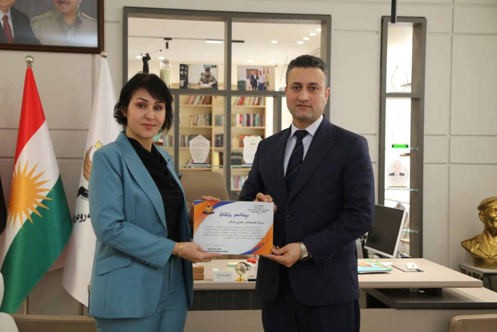 ئەمڕۆ چوارشەممە ٨ی ١٠ی ٢٠٢٥ مامۆستا نەژاد عبداللە بەڕێوەبەری گشتی پەروەردەی سلێمانی بە ئامادەبوونی مامۆستا سەربەست کریم بەڕێوەبەری بەشی ڕاهێنان و پەرەپێدانی پەروەردەیی لە بەڕێوەبەرایەتی گشتیمان سوپاس و پێزانین و ڕێزلێنان بەخشرایە کۆمەڵگەی پەروەردەیی کوردجینیەسی ٢ ، قوتابخانەی خەونی منداڵان و ئامادەیی وایزی دەروازە لە بەرامبەر هاوکاریکردن و پشتیوانی لە بوارەکانی پەروەردەو دابینکردنی هۆڵەکانی ناوەندەکانیان بەمەبەستی گەیاندنی ئامادەکارییەکان و ڕێنماییەکان بۆ ژمارەیەک لە سەرپەرشتیارو بەڕێوەبەرو مامۆستا کە لەلایەن ڕاهێنەران و پسپۆڕان بۆ فێربوونی بواری پەروەردە لە بواری تەکنەلۆجیا ئەنجامدرا بۆ بەگەڕخستنی لەناو کایەی پەروەردە.