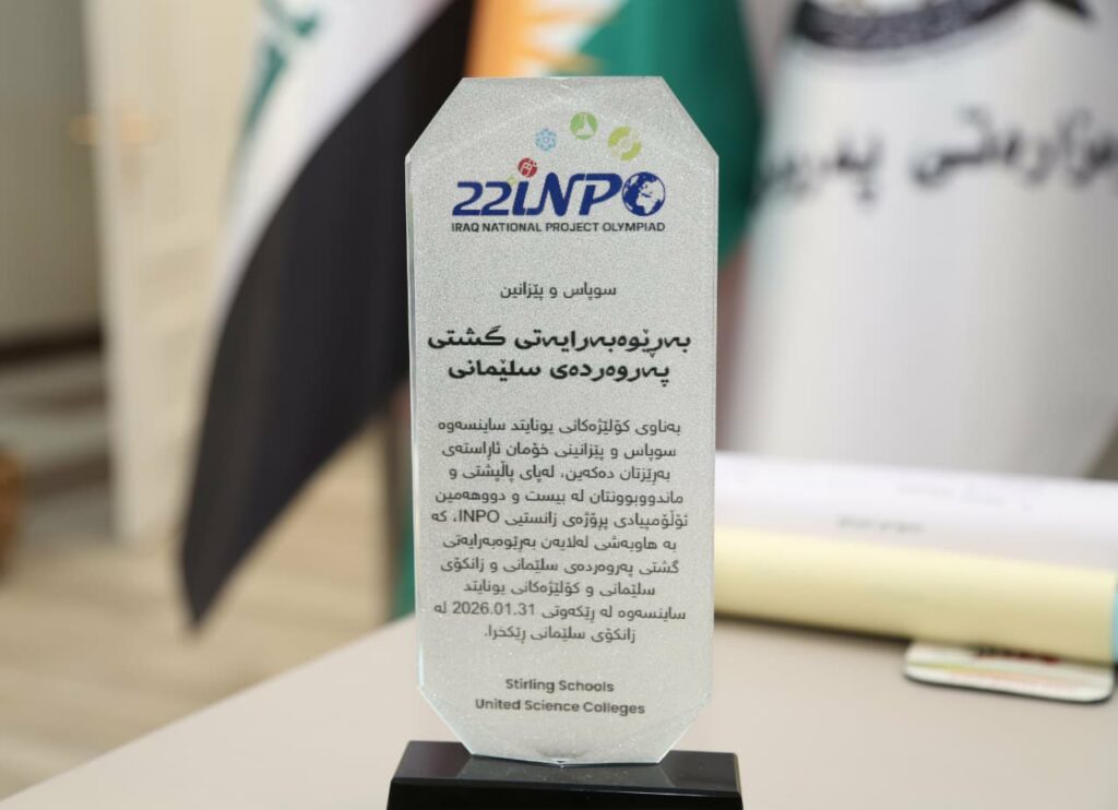 ئەم سوپاسنامەیە وەک وەفایەکە بۆ ئەو پاڵپشتییە بەردەوام و کاریگەرەی بەڕێوەبەری گشتی پێشکەشی کردووە لە پێناو سەرخستنی بیست و دوو هەمین ئۆڵۆمپیادی پێشبڕکێی زانستی INPO، کە بە هاوبەشی لەگەڵ بەڕێوەبەرایەتی گشتیمان و زانکۆی سلێمانی و قوتابخانەکانی یونایتدساینس لە ۳۱ ی ۱ی ۲۰۲٦ بە سەرکەوتوویی ئەنجامدرا.