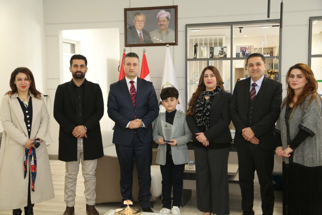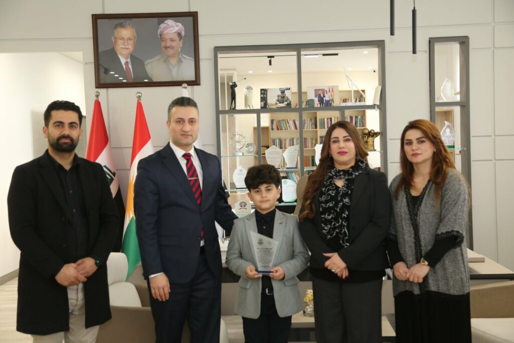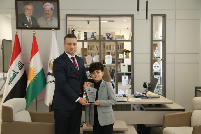 ئەمڕۆ یەکشەممە ١٥ ی ٢ ی ٢٠٢٦ مامۆستا نەژاد عبداللە بەڕێوەبەری گشتی پەروەردەی سلێمانی بە ئامادەبوونی مامۆستا ڕۆزا رووف بەڕێوەبەری پەروەردەی ڕۆژهەڵات سوپاسنامەی بەخشییە خوێندکار چەمەن دابان ڕزگار لە قۆناغی چوارەمی قوتابخانەی ڕۆزی بنەڕەتی لەپای پێشەکەشکردنی ژمارەیەک لە سروودی نیشتیمانی بەو پەڕی پەرۆشی و هەستی نیشتمان پەروەرییەوە. پاشان چەند کتێبێکی لە کتێبخانەکەی خۆی پێشکەشکردو هیوای دواڕۆژێکی پرشنگداری بۆ خواست.