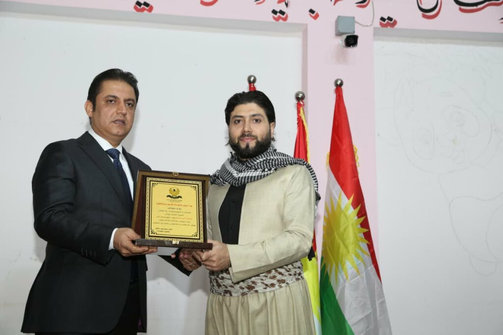 لە کۆتایدا بەڕێز وەزیری پەروەدە ڕێزلێنانی بەخشیە هەریەک لە مامۆستا ئاسۆ عبدالخالق و قوتابی دانیال ئاسۆ عبدالخالق,