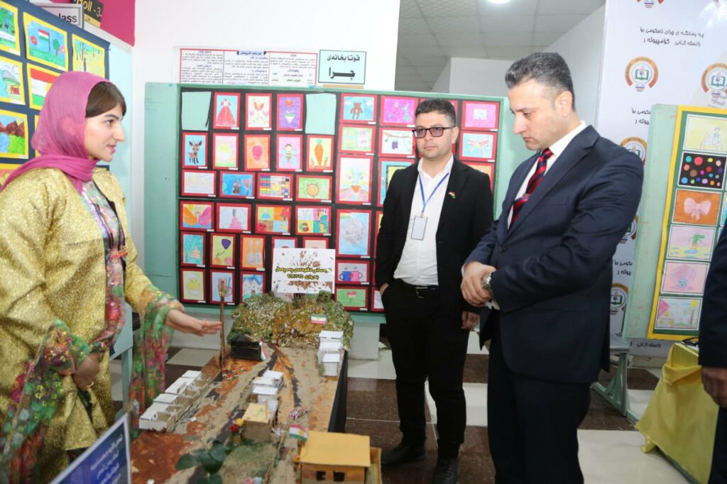 ئەمڕۆ سێشەممە ١٧ی ۲ی ۲۰۲٦ بەڕێزان د. ئالان حمە سعید وەزیری پەروەردەی حکومەتی هەرێمی کوردستان و ئاسۆ بەکر قائیمقامی قەزای چەمچەماڵ و مامۆستا نەژاد عبدالله بەڕێوەبەری گشتی پەروەردەی سلێمانی و مامۆستا قاسم عەلی معروف بەڕێوەبەری پەروەردەی چەمچەماڵ و ژمارەیەک لە بەرپرسانی حکومی و پەروەردەیی سەردانی فێستیڤاڵەکەیان کرد.